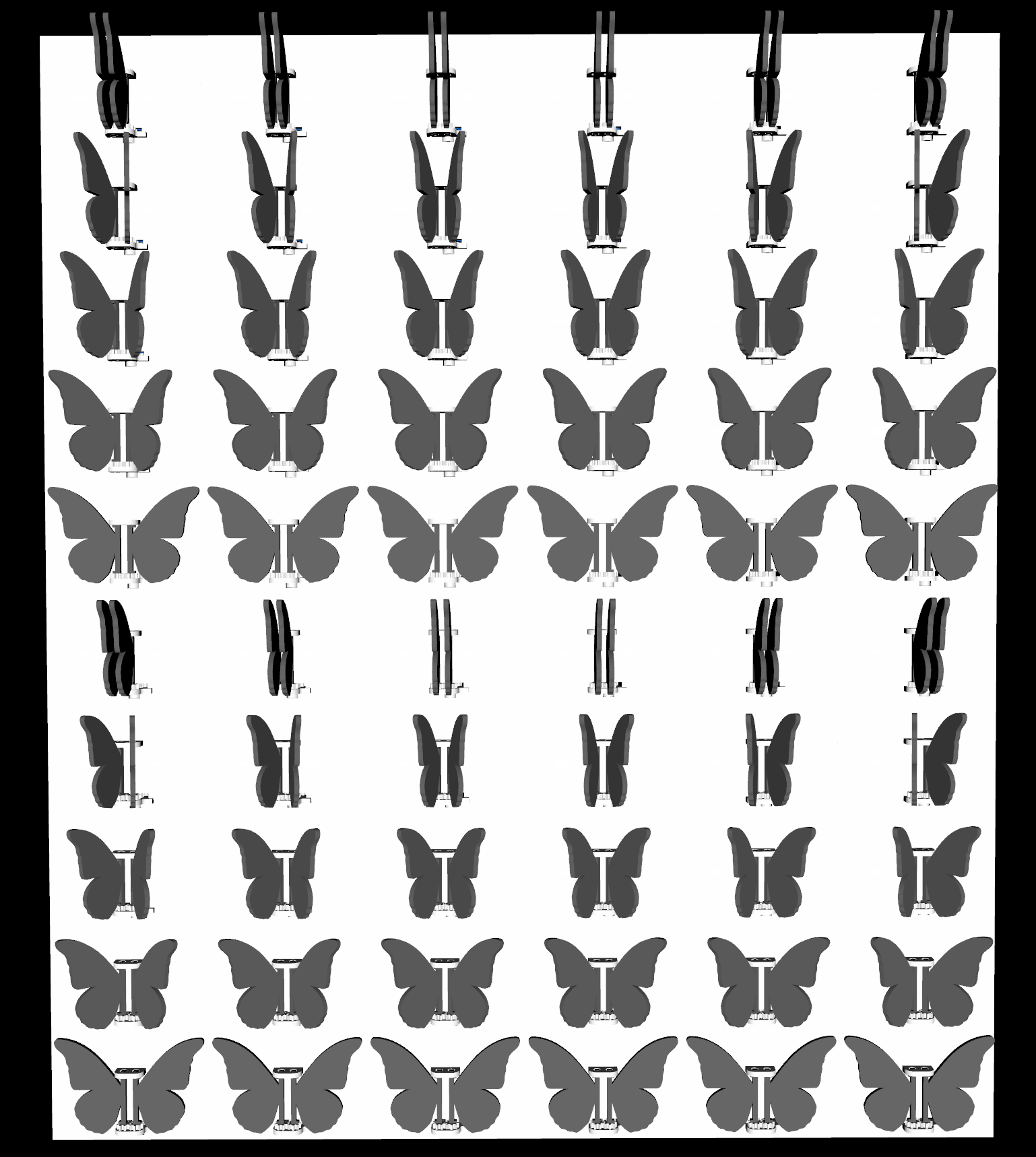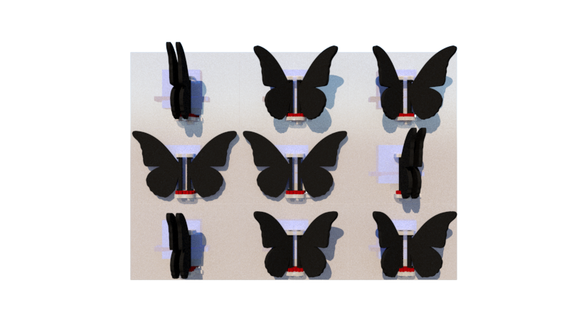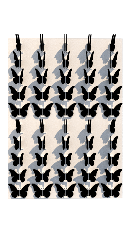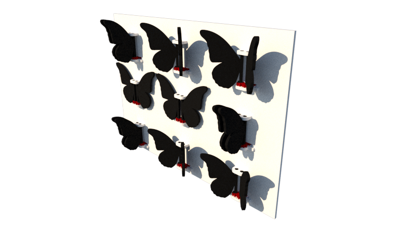 La obra es una instalación interactiva bidimensional. Está compuesta de un gran panel blanco y miles de mariposas negras de alas móviles ensambladas con piezas a esta estructura. La distribución de las mariposas en filas y columnas conforma un amplio mosaico animado, que en su conjunto crea imágenes puntillistas.
