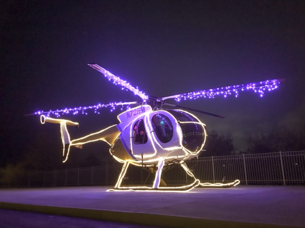 Una variante de esta propuesta es reemplazar los globos y drones por helicópteros. La ventaja de esta variante sobre la propuesta original es que la preparación de las aeronaves requiere de menos tiempo, la autonomía de vuelo es mayor, los helicópteros se asocian más al ámbito castrense, por lo que resultará más fácil diferenciar el evento del Ministerio de Defensa Nacional de la Fiesta de las Luces.